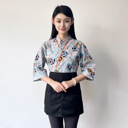 בגדי שף ושרת שרוול בינוני עבור סושי איזקאיה יפני מטבח בד ארוג ממותגים